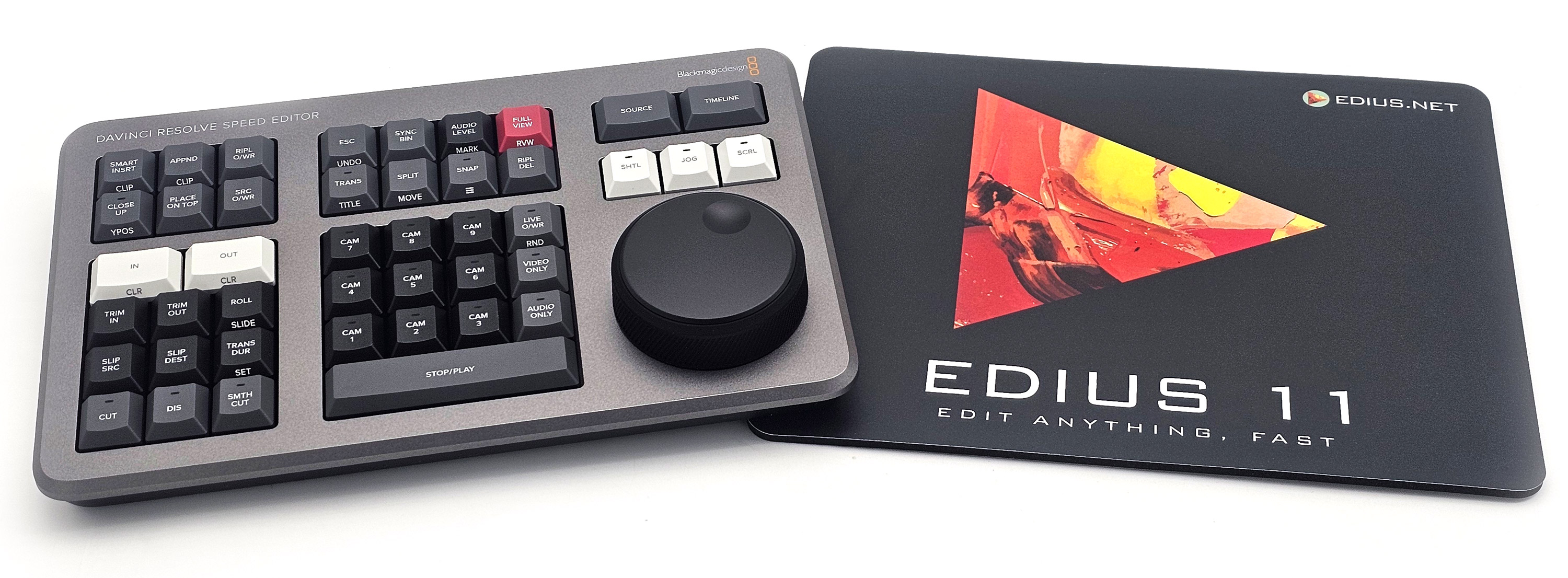 A tailor‑made software solution that makes the Speed Editor fully compatible with Grass Valley EDIUS. It translates hardware commands into native EDIUS functions, enabling intuitive, hardware‑assisted editing control - EDIUS 11 Mousepad