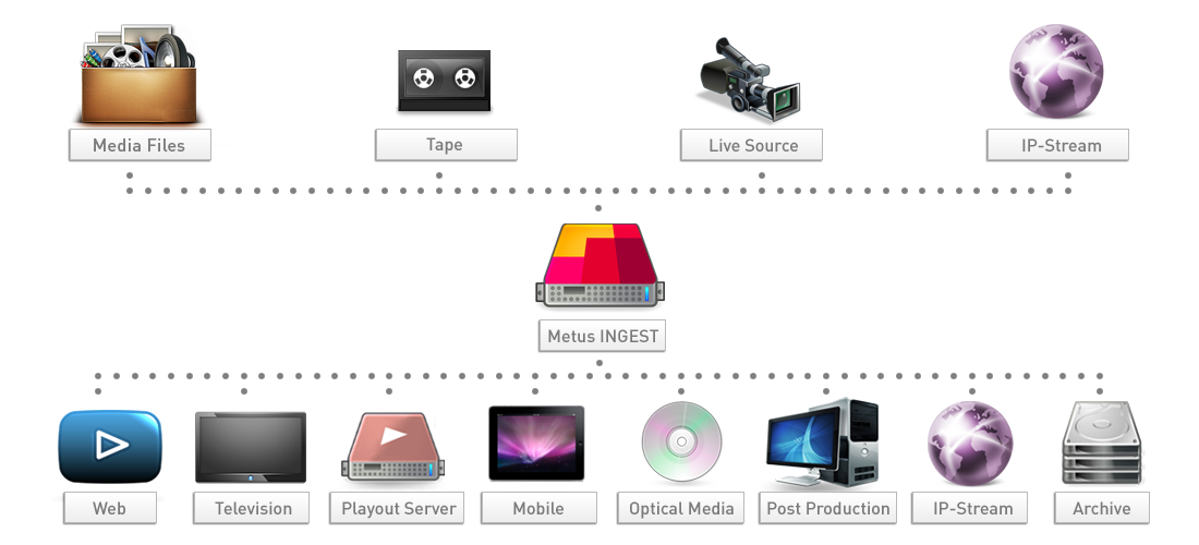 Metus INGEST is the essential desktop multimedia capture, transcoding, and streaming software. Metus INGEST offers a wide set of ingest modules to import content from various sources and formats. The software is very easy to use. Every control and window required for manual operation is on a single screen.