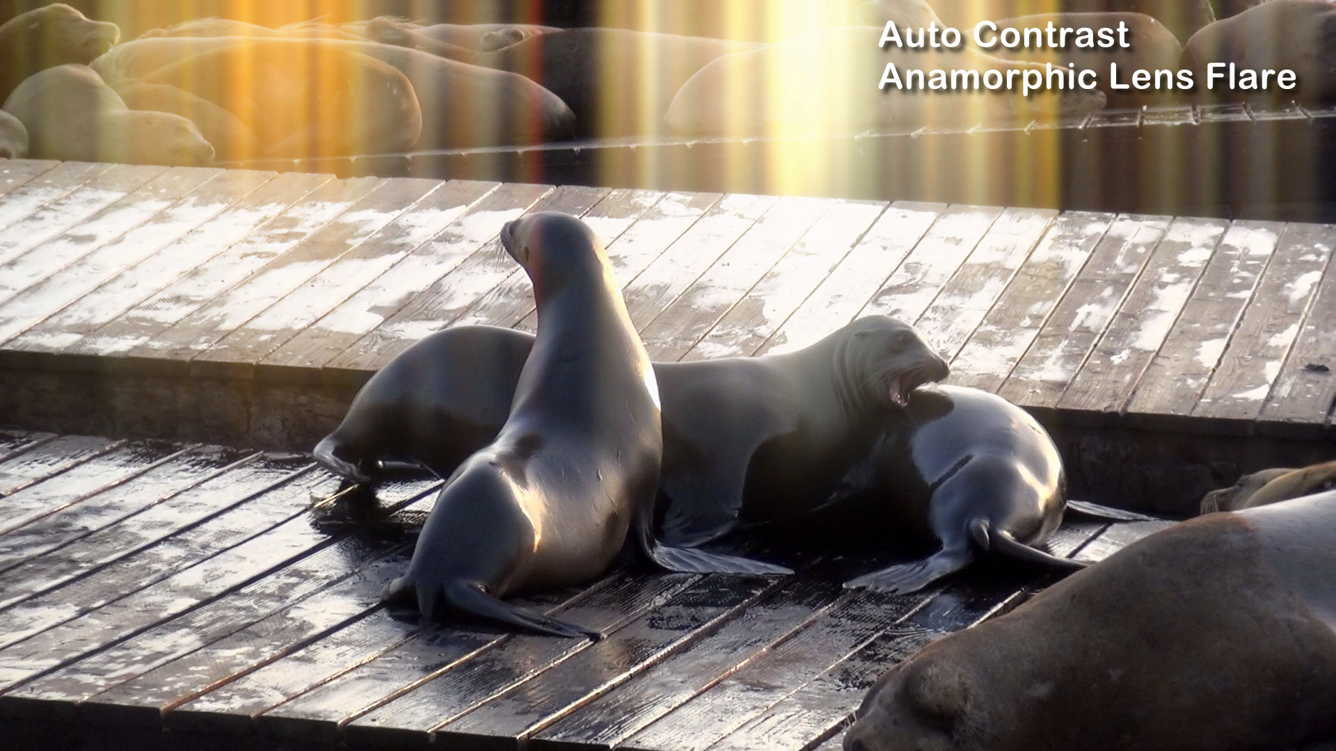 Light Flares: Light Flares allow you to enhance your scene with animated lights sources and their reflections. Like in this example of Pier 39 where there was actually no sun to be seen when we shot the scene. You may fine tune every detail of the light flares settings. By choosing the desired focal length of the simulated lens you determine the character of the reflection.