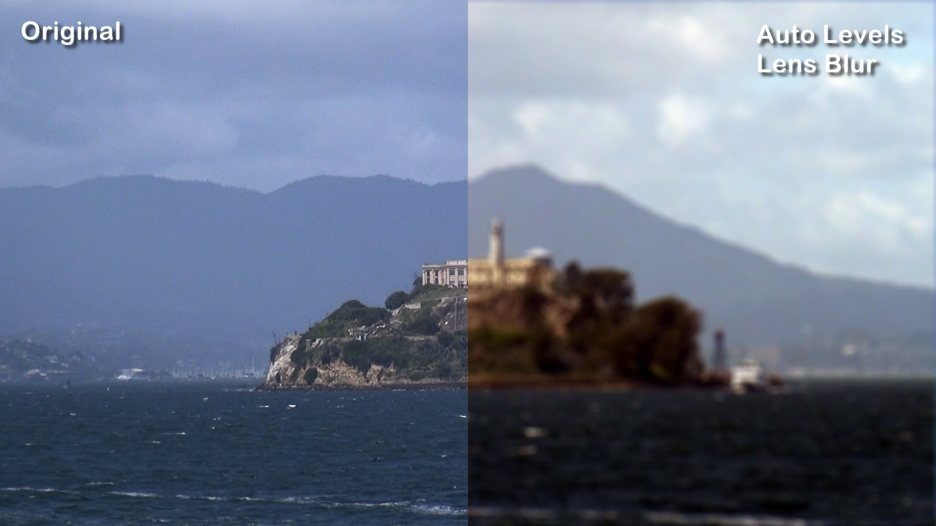Blur-Videofilter: We know of no other blur filter of this quality. The Ignite Blur filter simulates the „focus/out of focus“ effect of a real lens in a very realistic manner. With our shot of Alcatraz (which is originally sharp) we applied this effect – doesn’t this look real? Setting keyframes you may animate the degree of being in or out of focus as you wish.