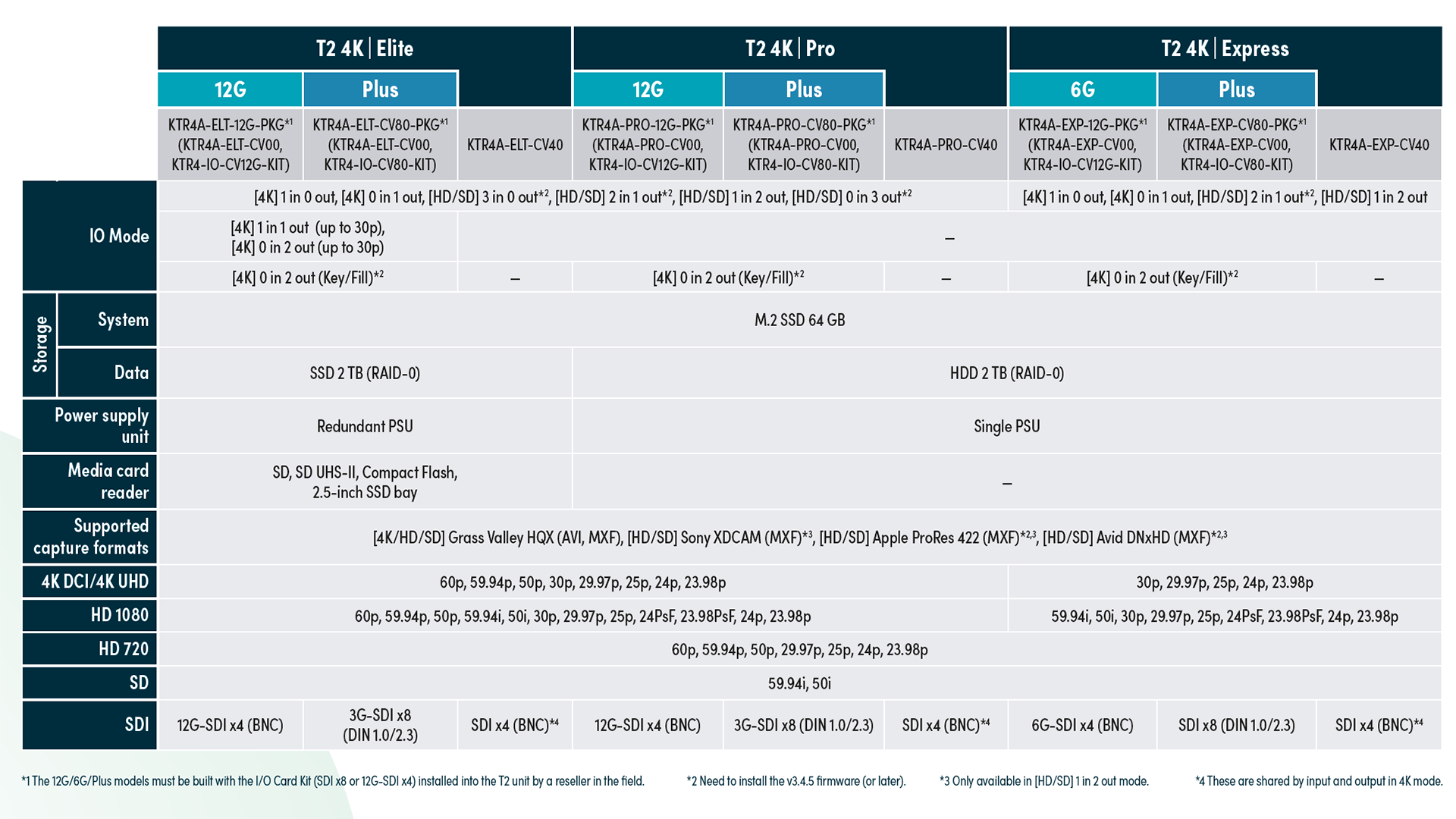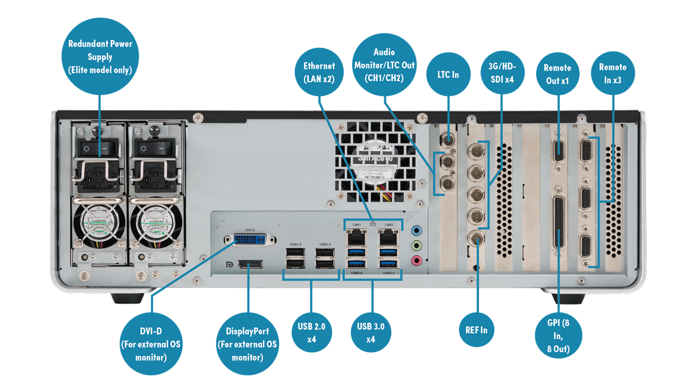 - 4K (2160p — up to 30p) ingest and playback support (4K: 1 in 1 out mode) (Elite 12G and Elite Plus only)